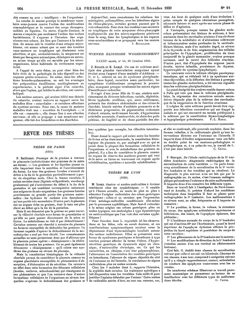 1920, Articles originaux. -