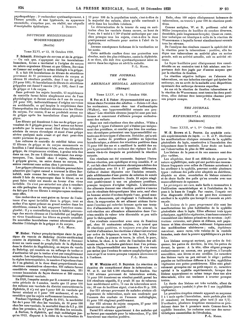 1920, Articles originaux. -