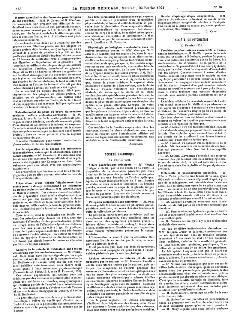 1921, Articles originaux. -