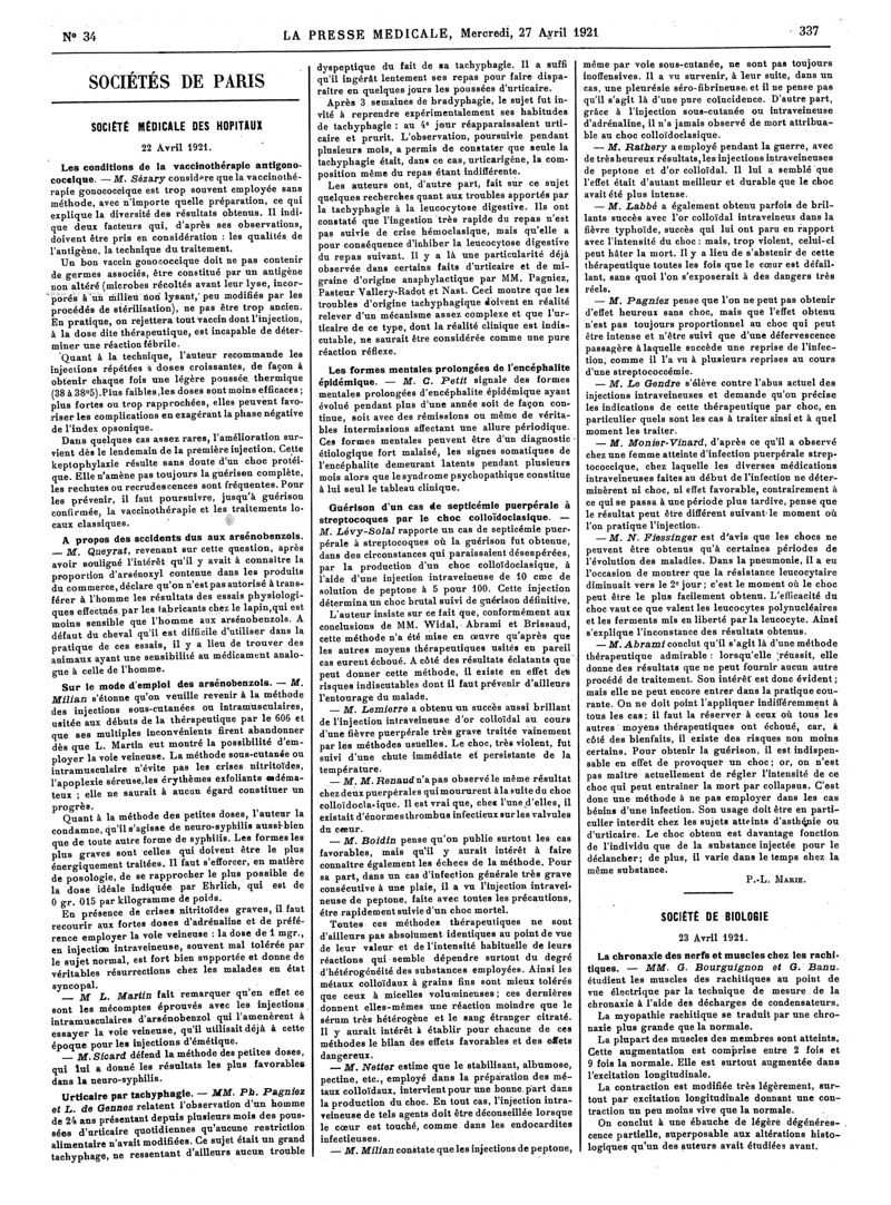 1921, Articles originaux. -