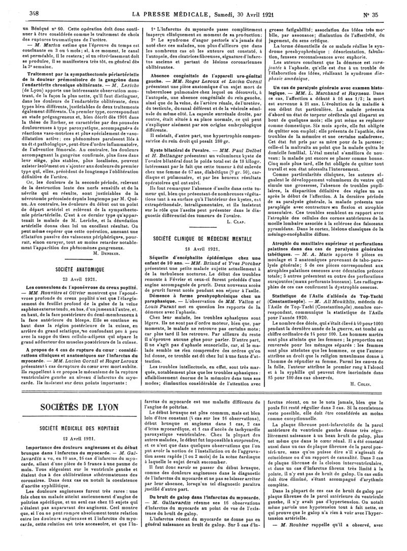 1921, Articles originaux. -