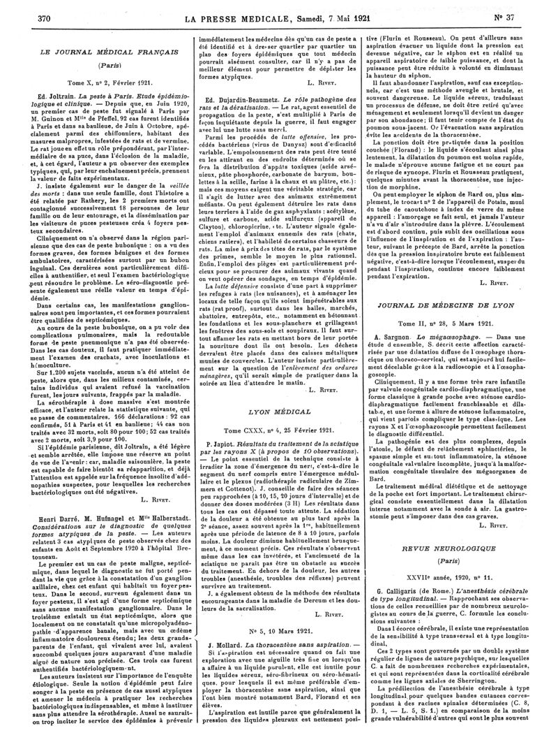 1921, Articles originaux. -