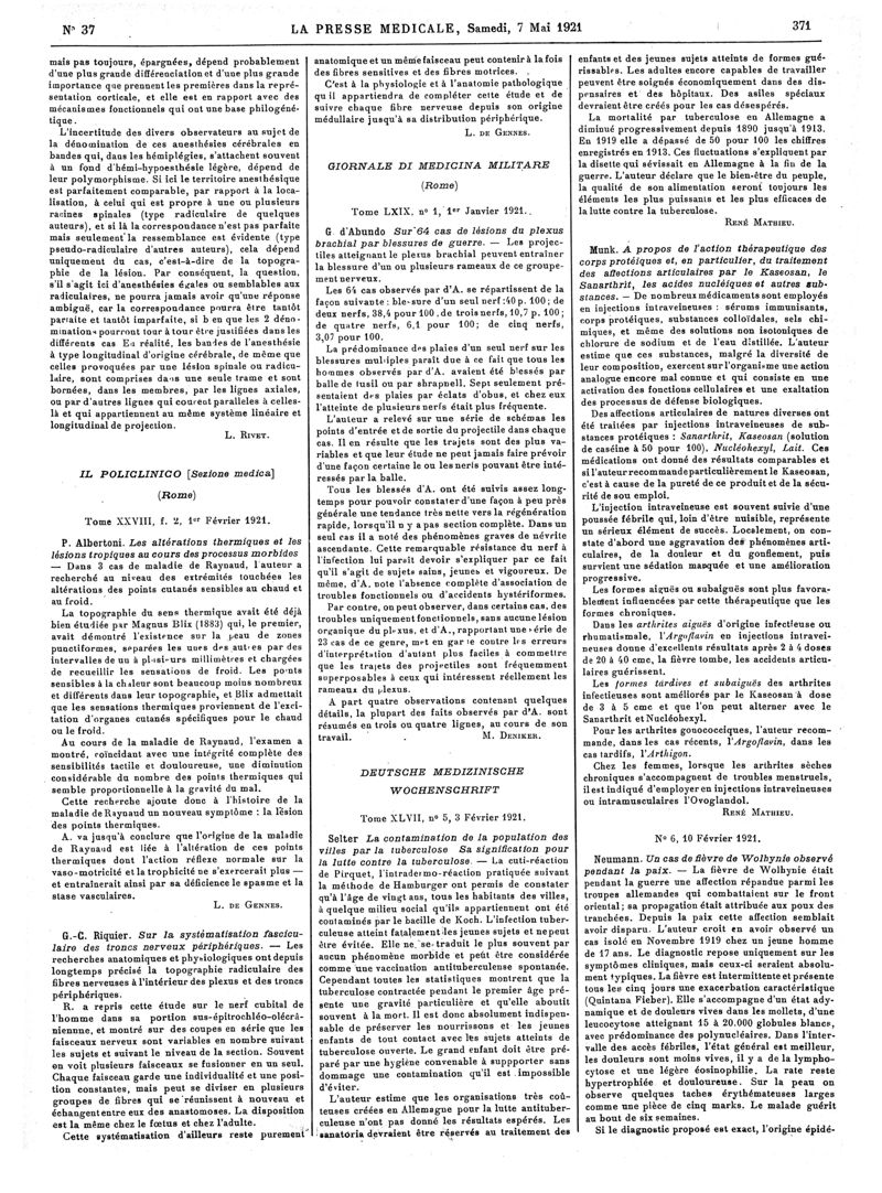 1921, Articles originaux. -