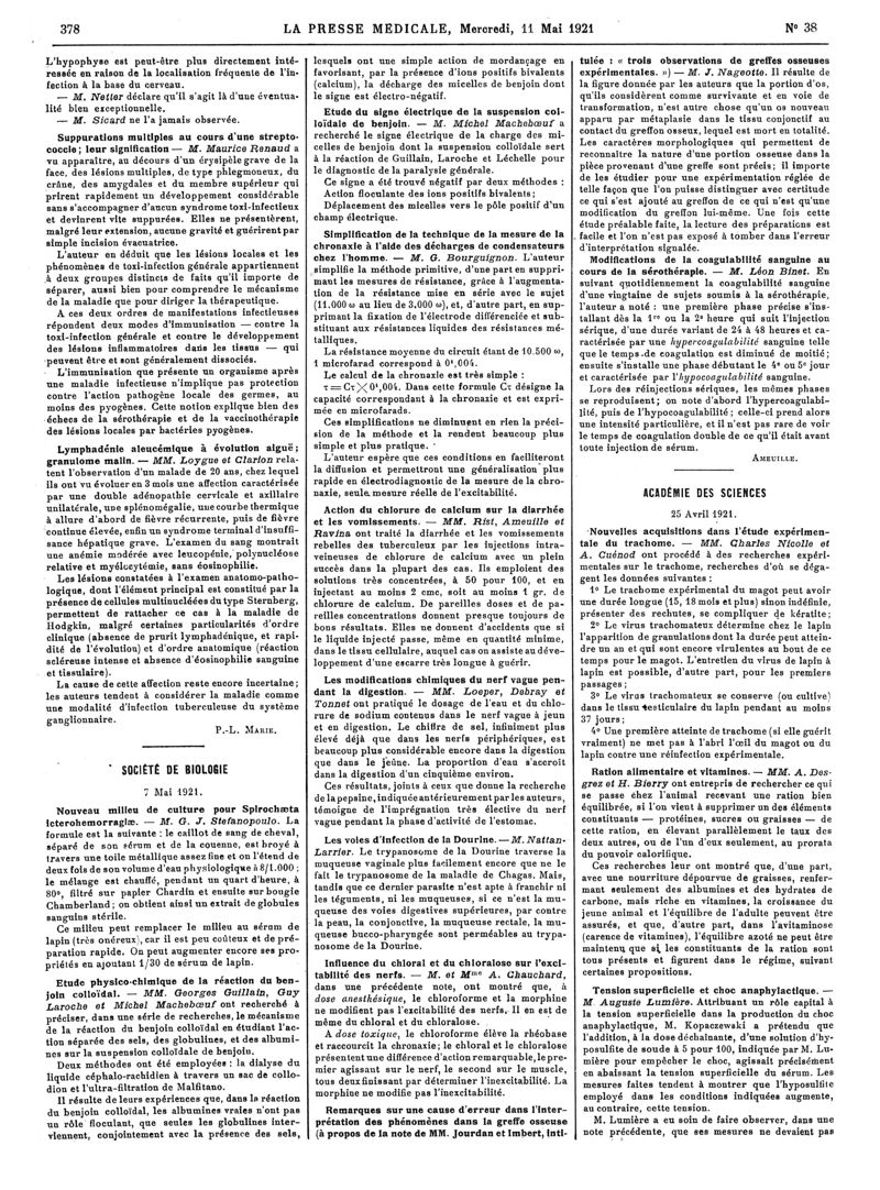 1921, Articles originaux. -