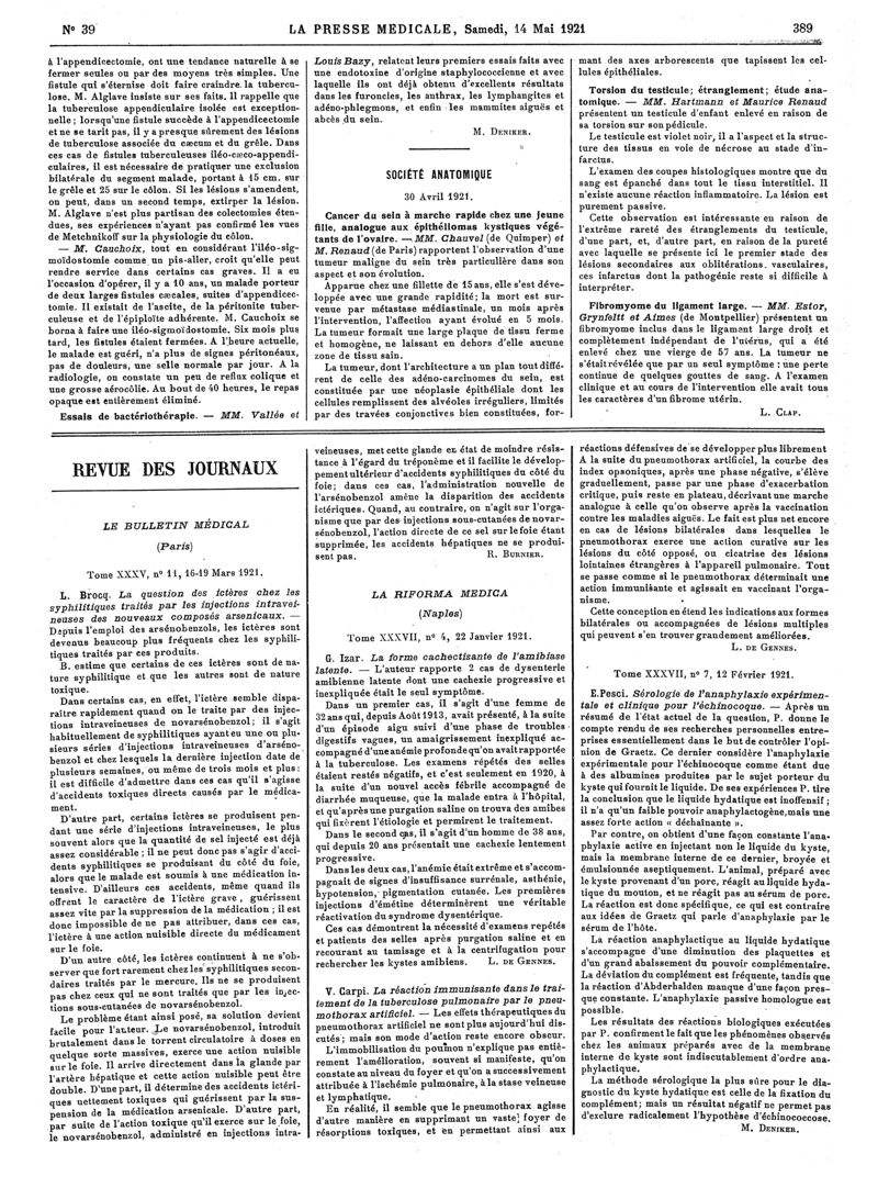 1921, Articles originaux. -
