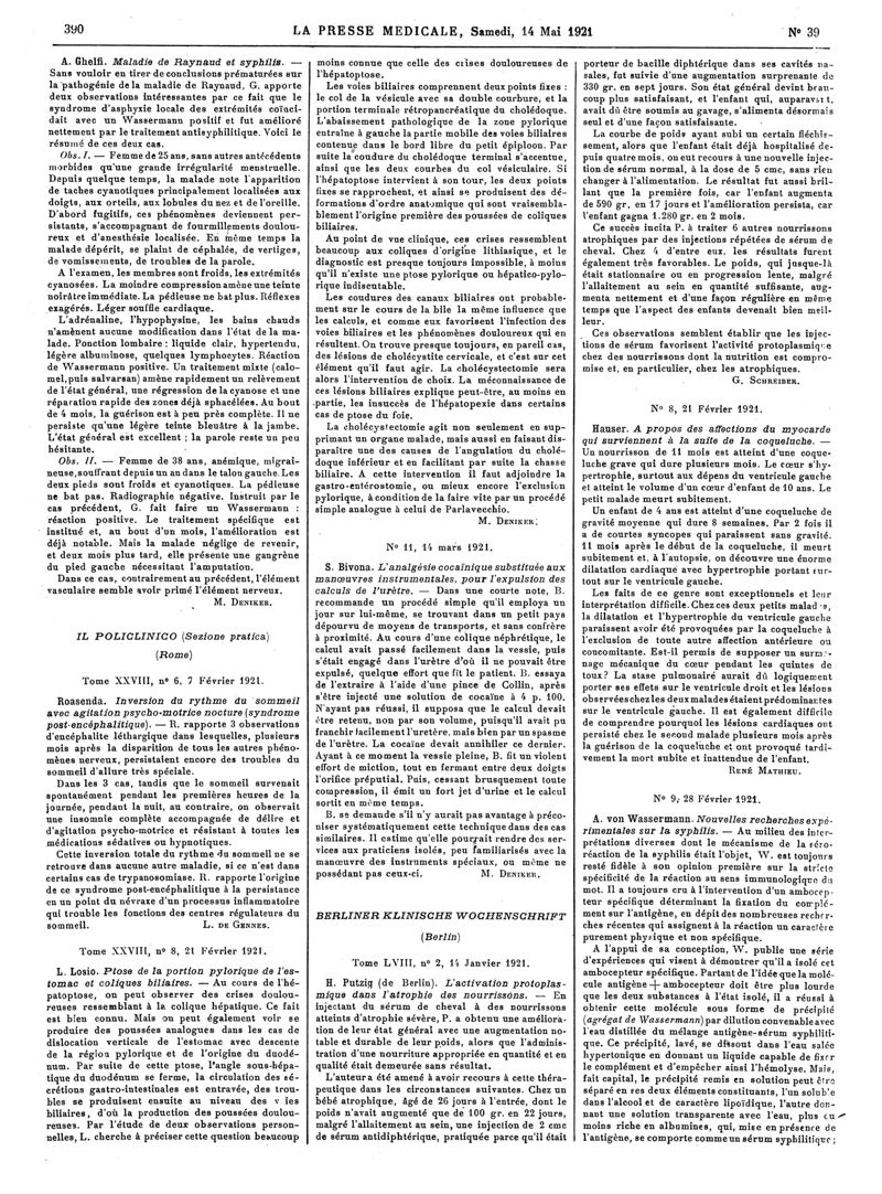 1921, Articles originaux. -