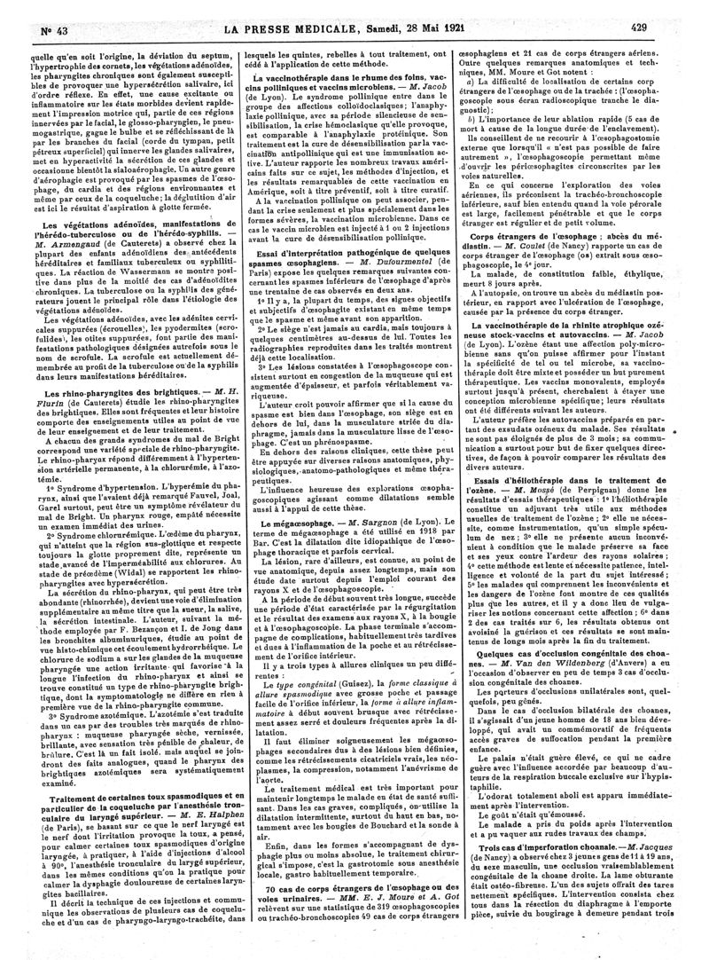 1921, Articles originaux. -