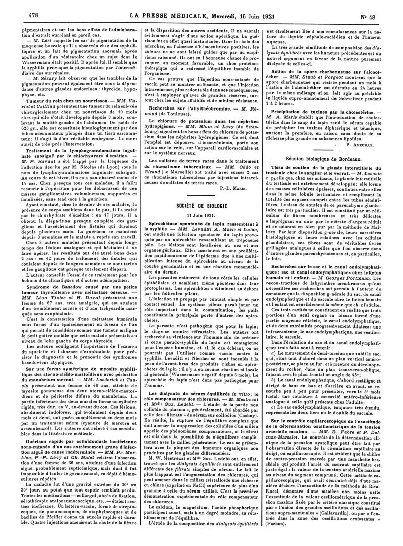 1921, Articles originaux. -