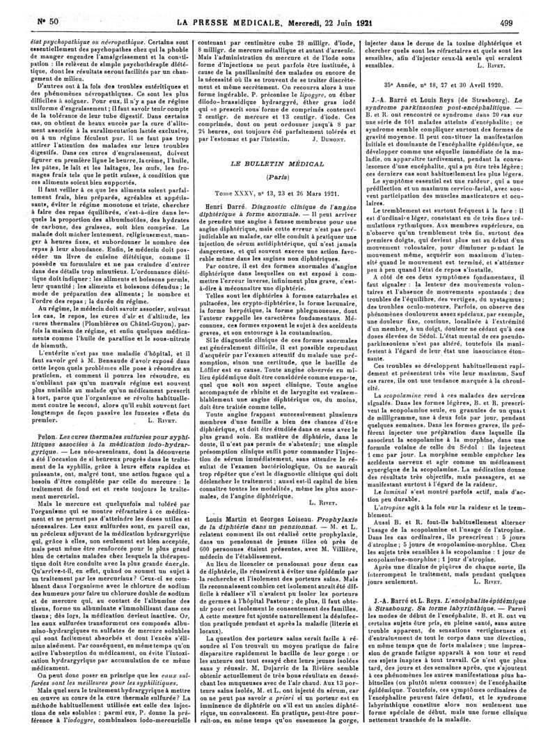 1921, Articles originaux. -