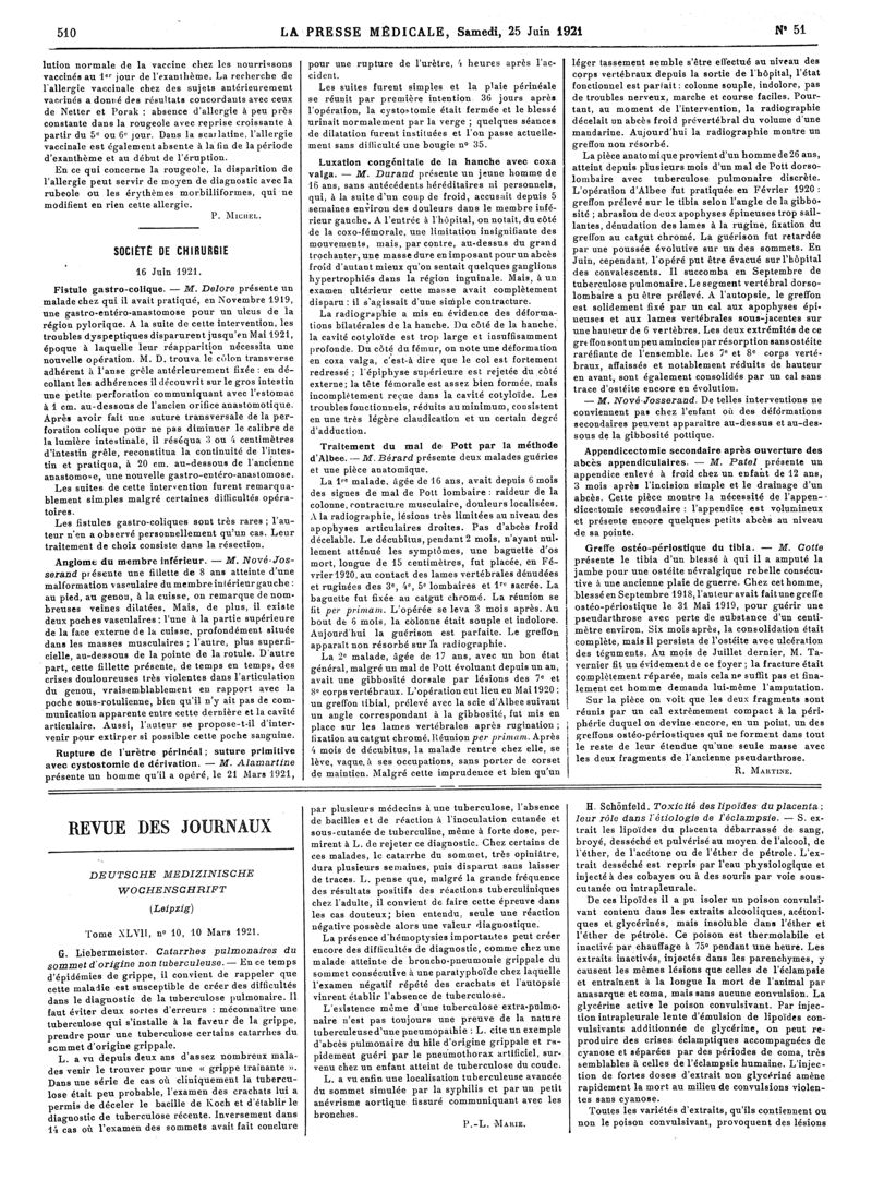 1921, Articles originaux. -
