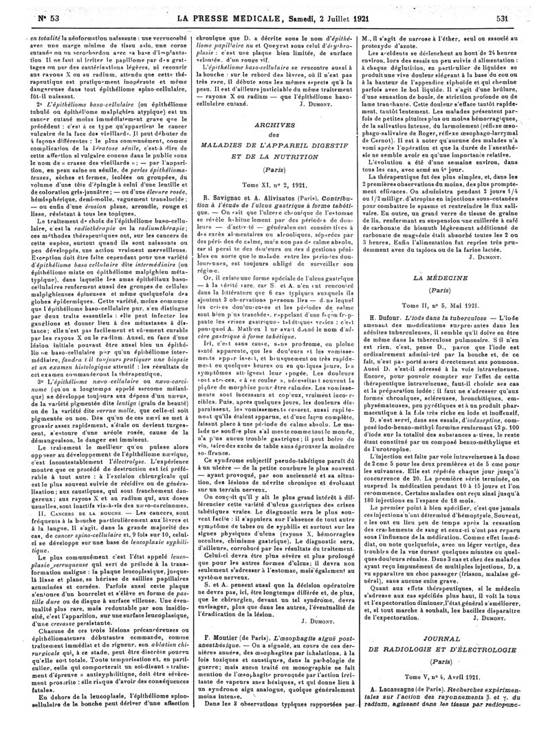 1921, Articles originaux. -