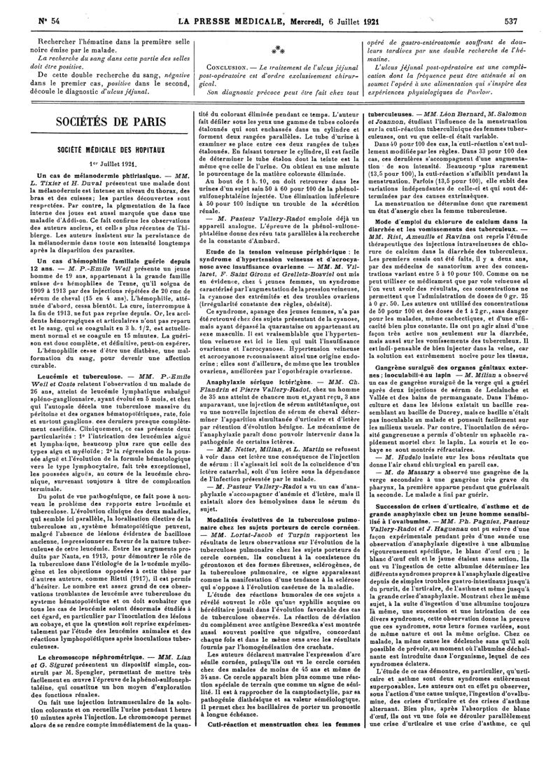 1921, Articles originaux. -