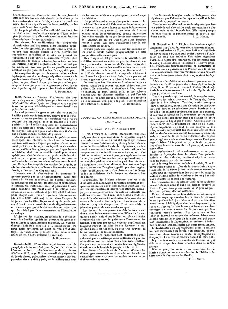 1921, Articles originaux. -