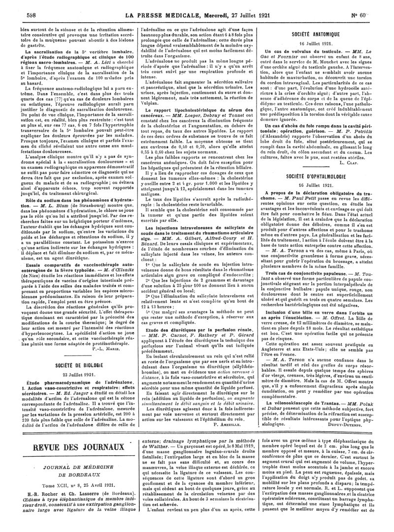 1921, Articles originaux. -