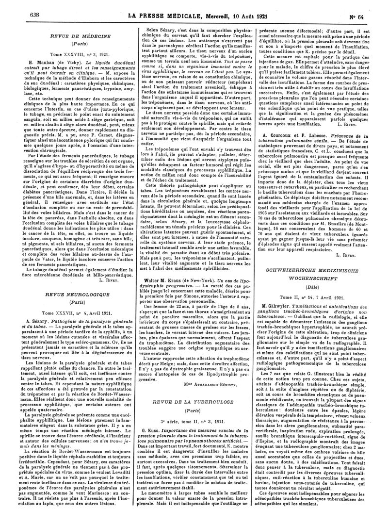 1921, Articles originaux. -