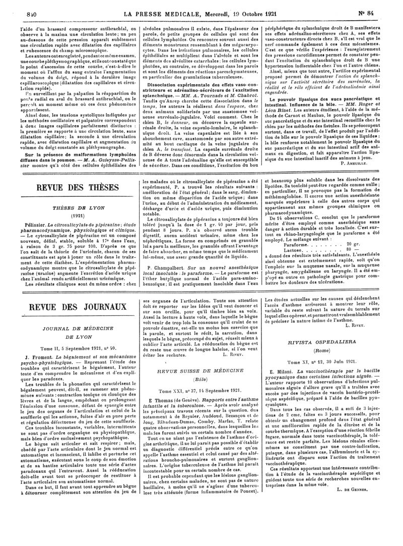 1921, Articles originaux. -