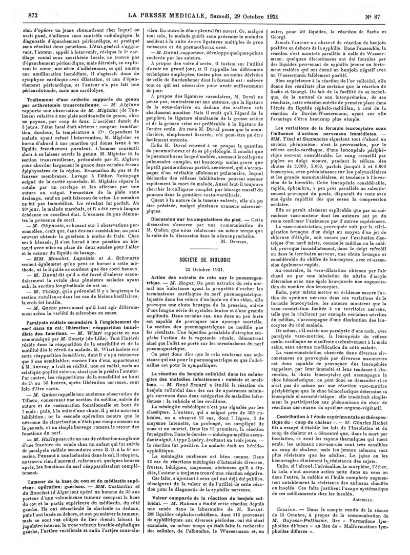 1921, Articles originaux. -