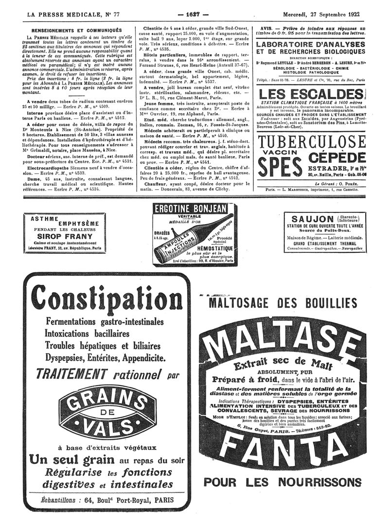 1922, Volume d'annexes. -