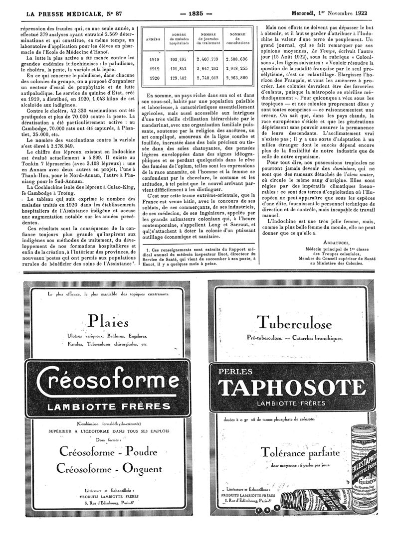 1922, Volume d'annexes. -