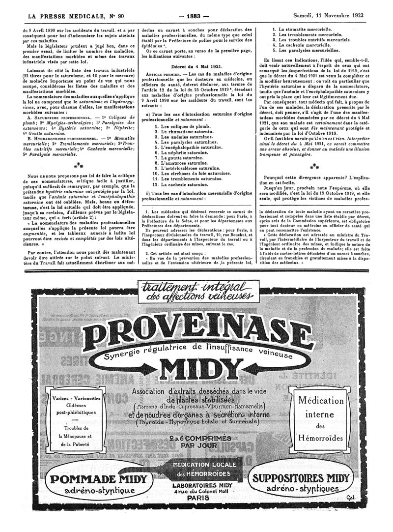 1922, Volume d'annexes. -