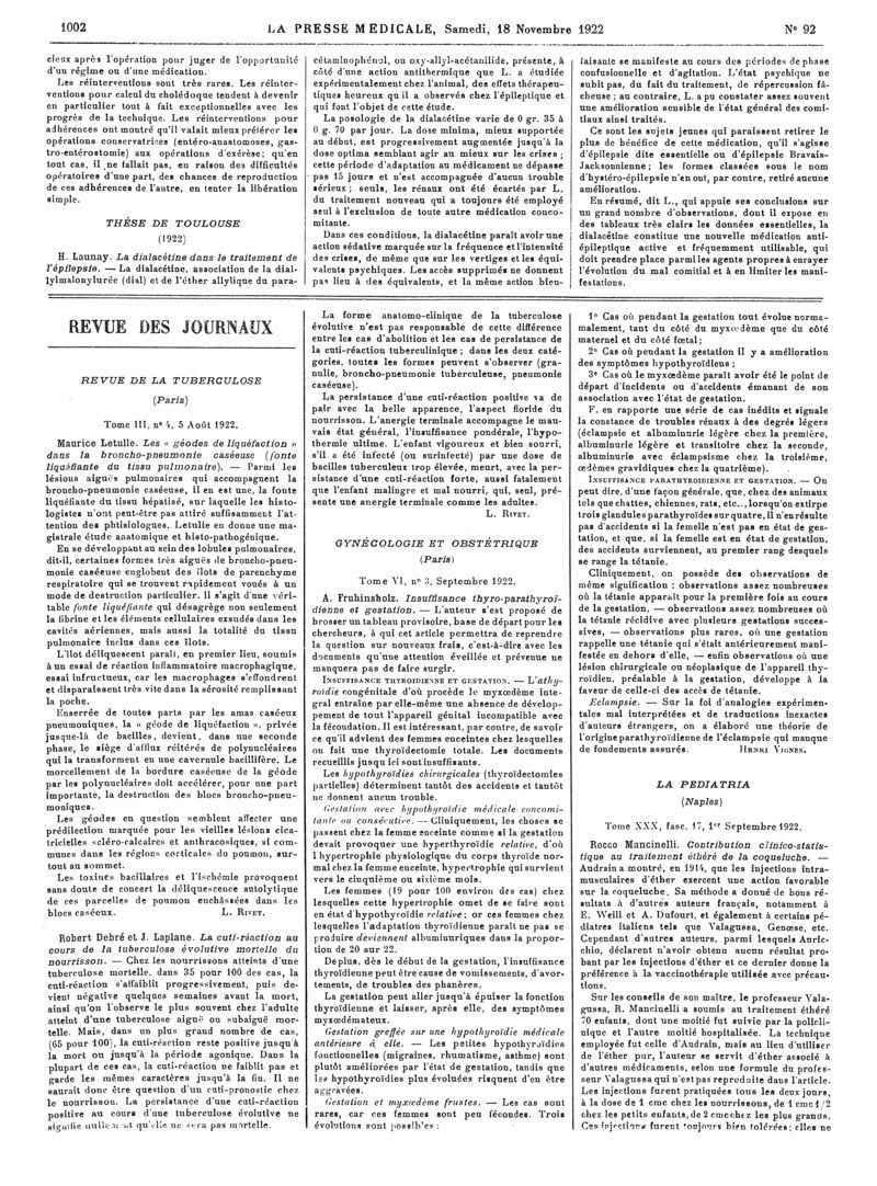 1922, Articles originaux. -