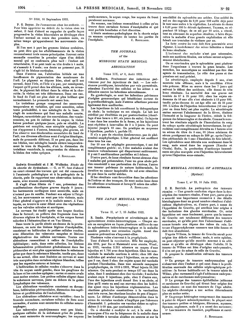 1922, Articles originaux. -