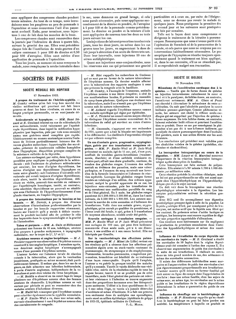 1922, Articles originaux. -