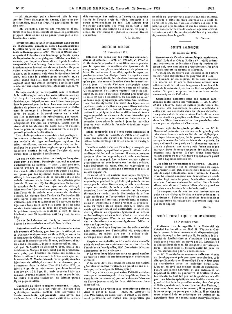 1922, Articles originaux. -