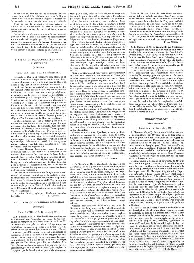 1922, Articles originaux. -