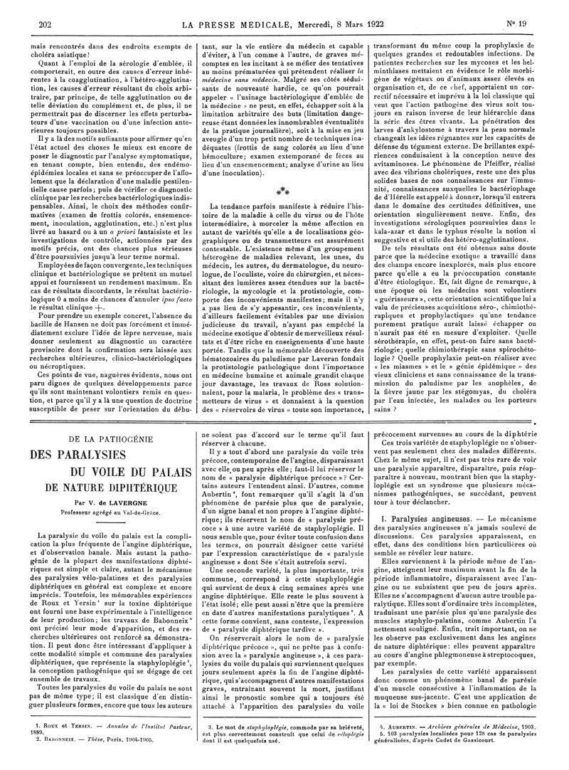 1922, Articles originaux. -