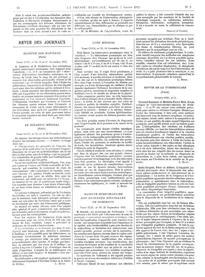 1922, Articles originaux. -