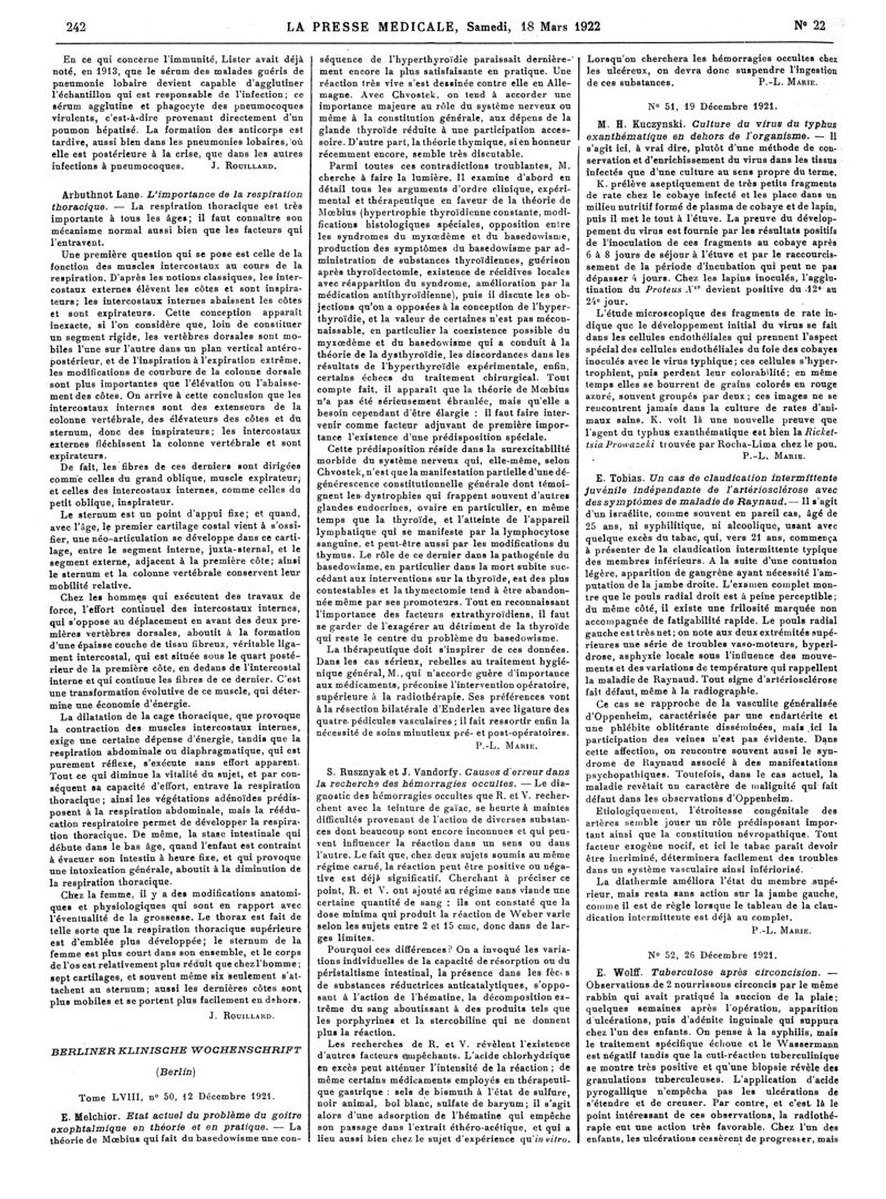 1922, Articles originaux. -