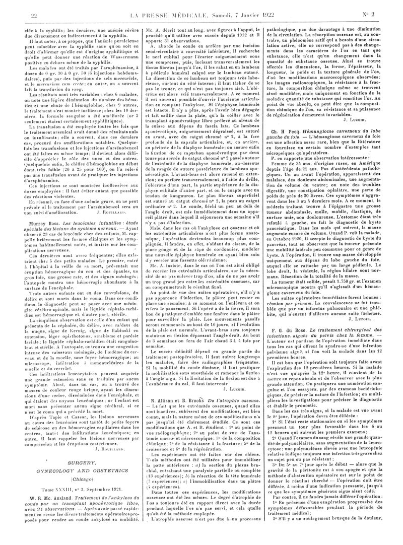 1922, Articles originaux. -