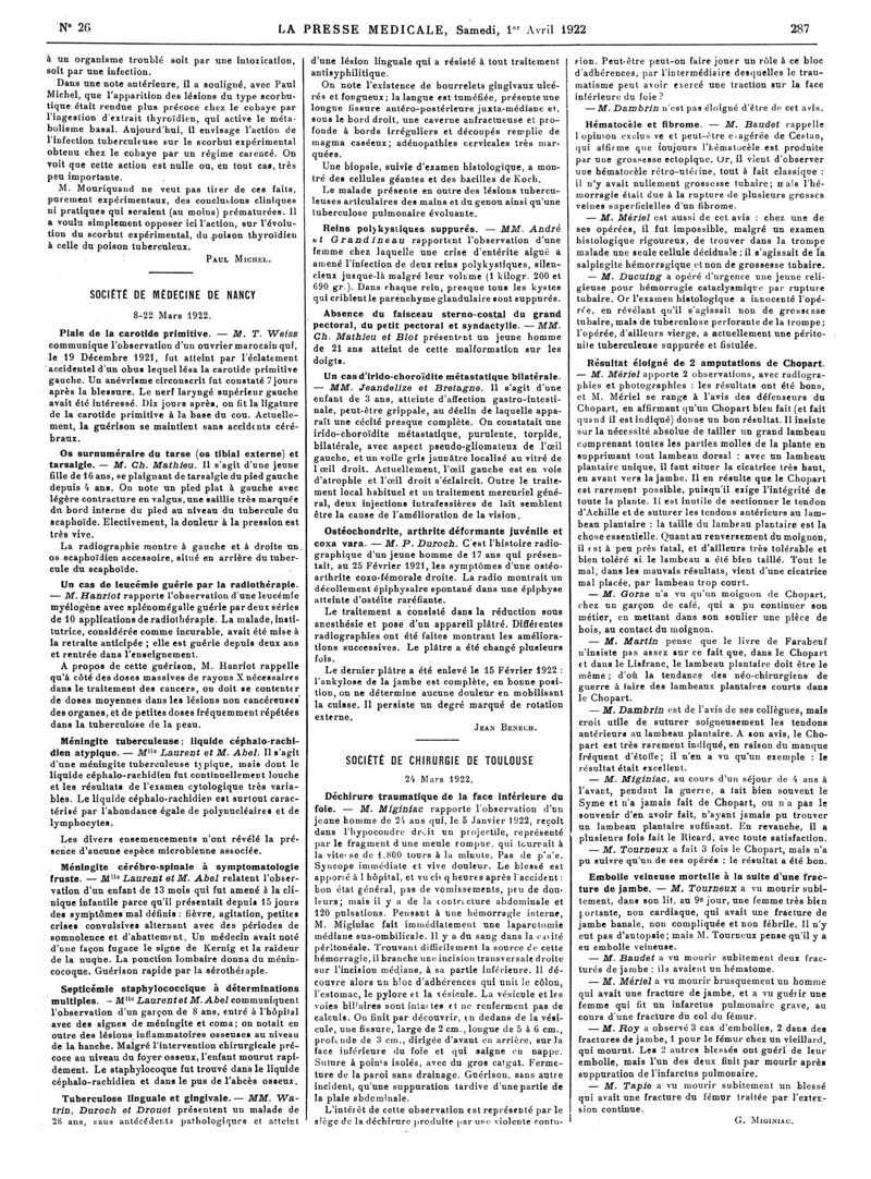 1922, Articles originaux. -