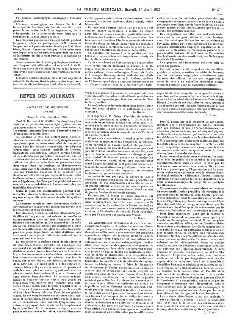 1922, Articles originaux. -