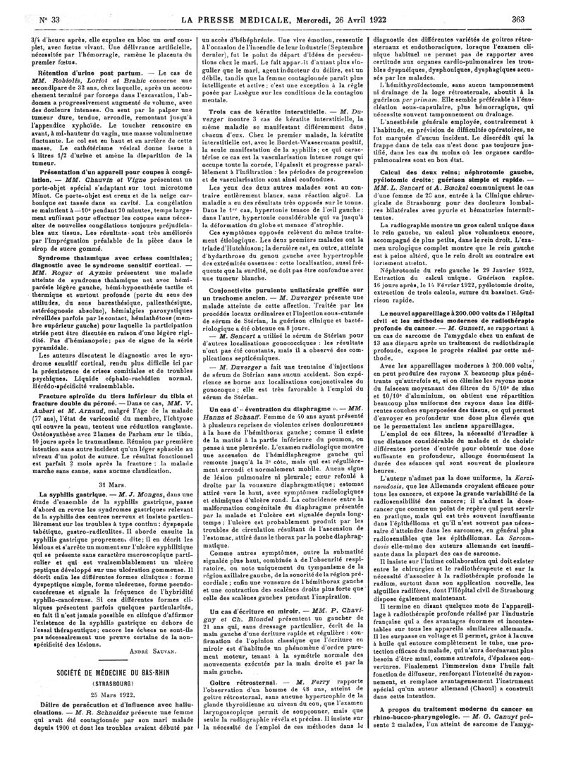 1922, Articles originaux. -