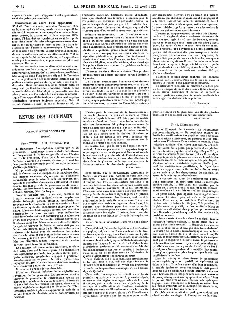 1922, Articles originaux. -
