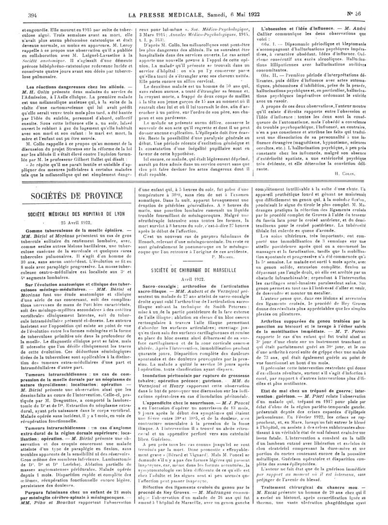 1922, Articles originaux. -