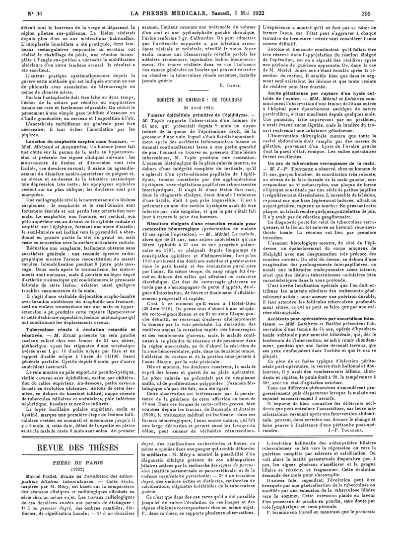 1922, Articles originaux. -