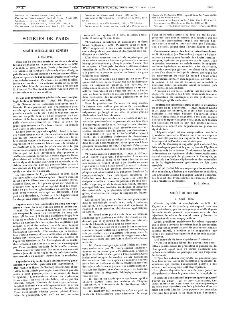 1922, Articles originaux. -