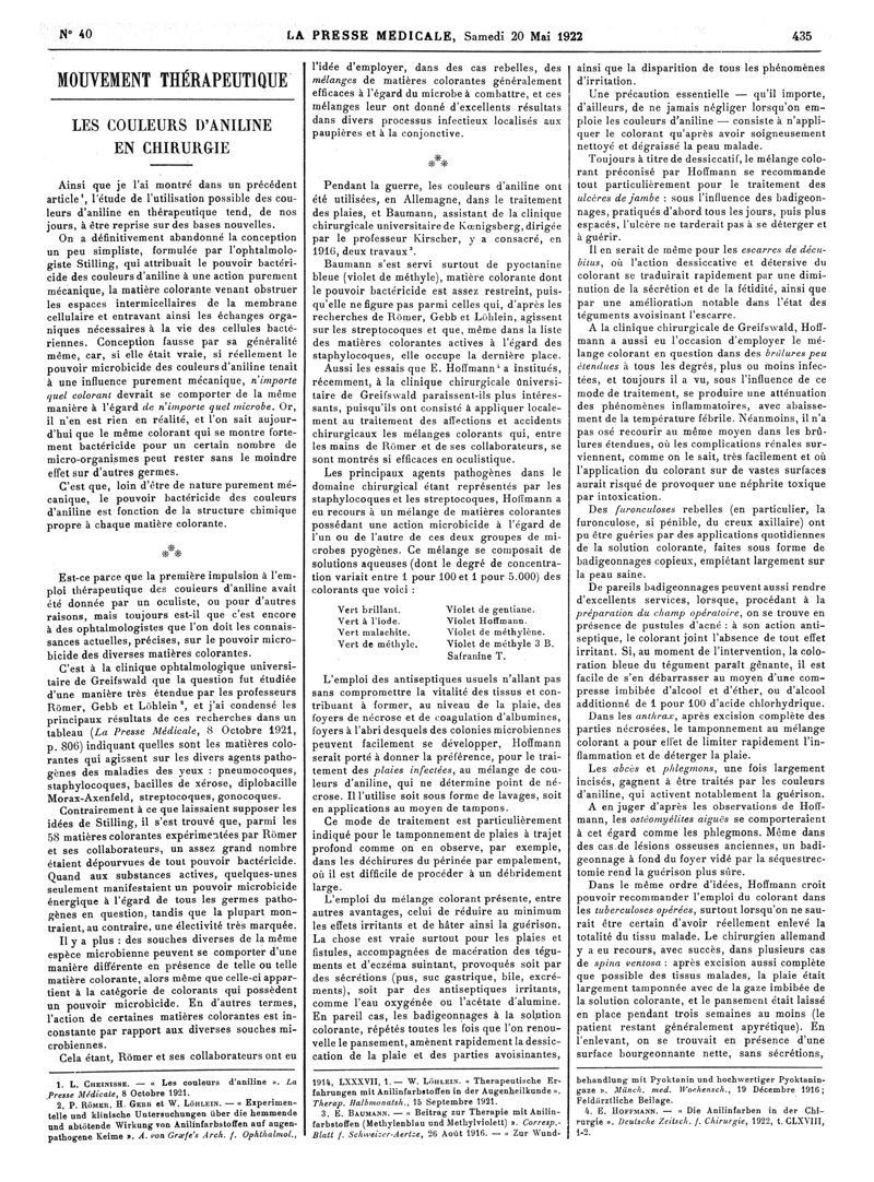 1922, Articles originaux. -