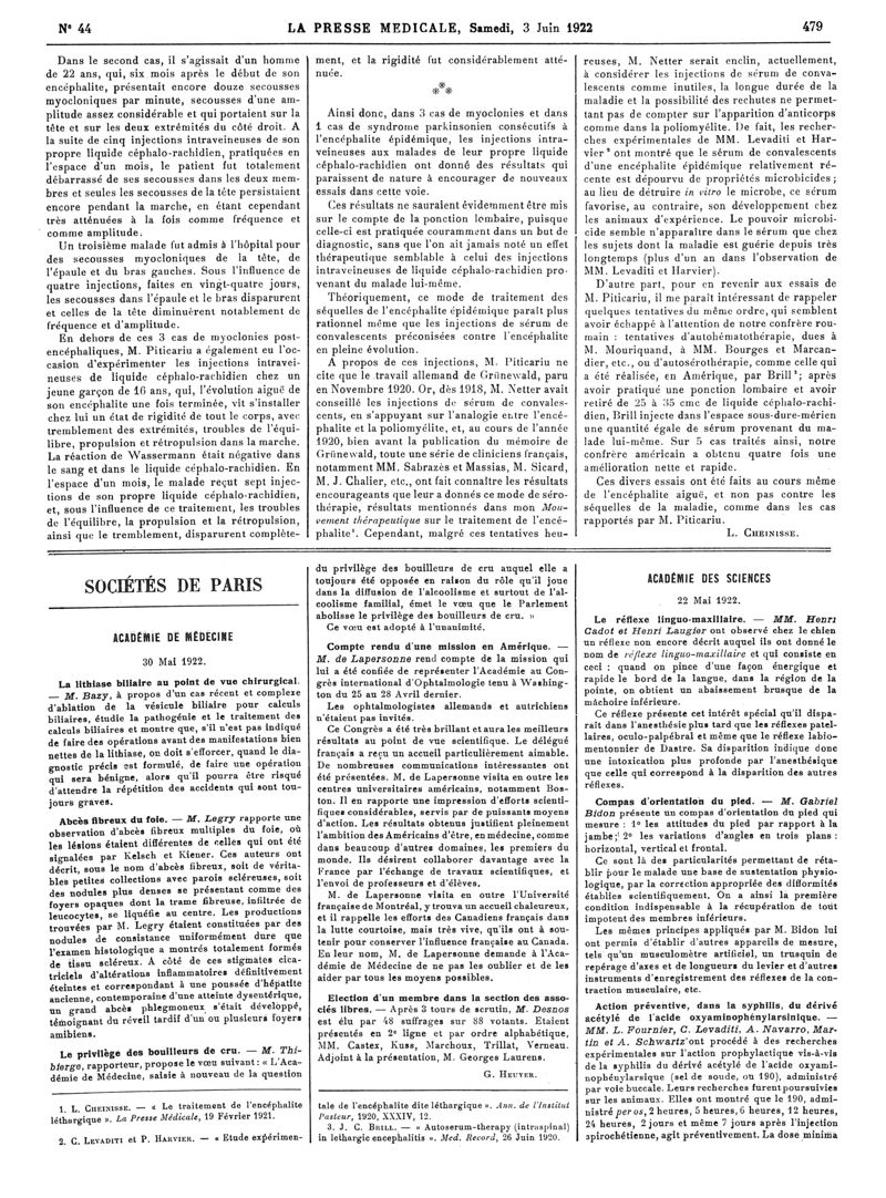 1922, Articles originaux. -