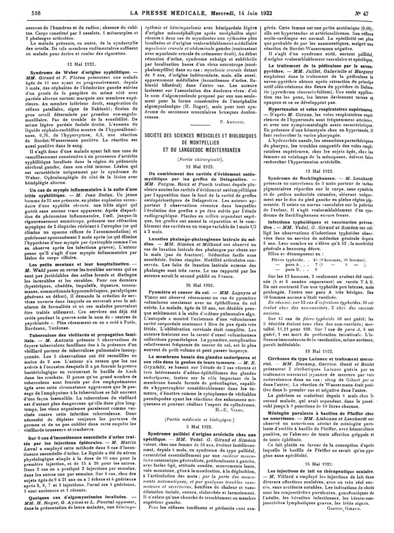 1922, Articles originaux. -