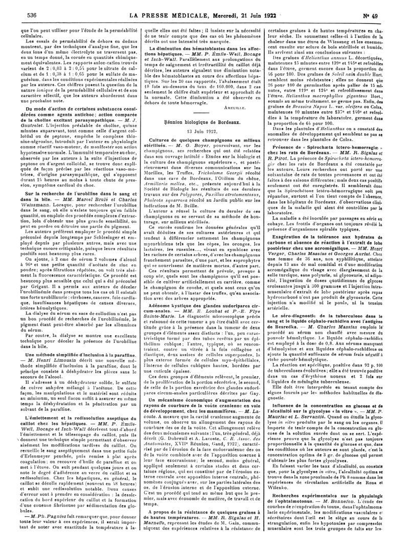 1922, Articles originaux. -
