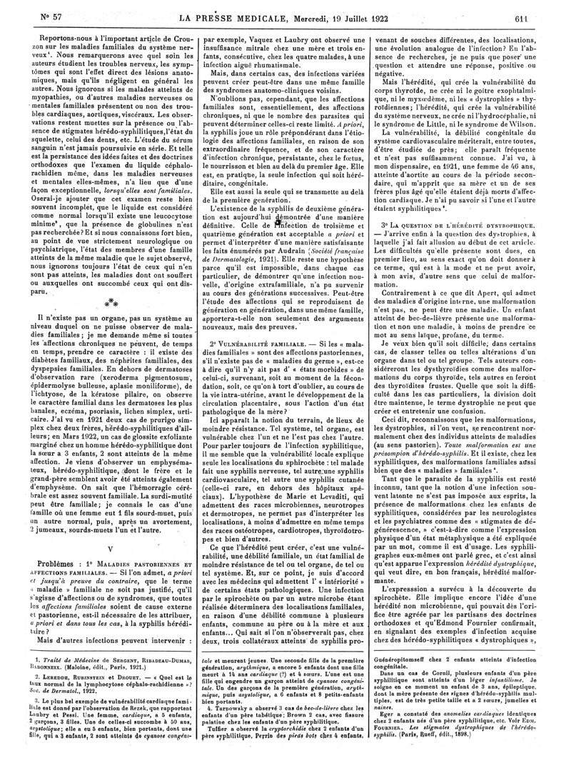 1922, Articles originaux. -