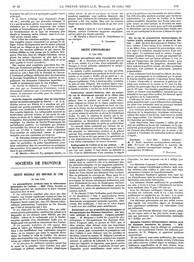 1922, Articles originaux. -