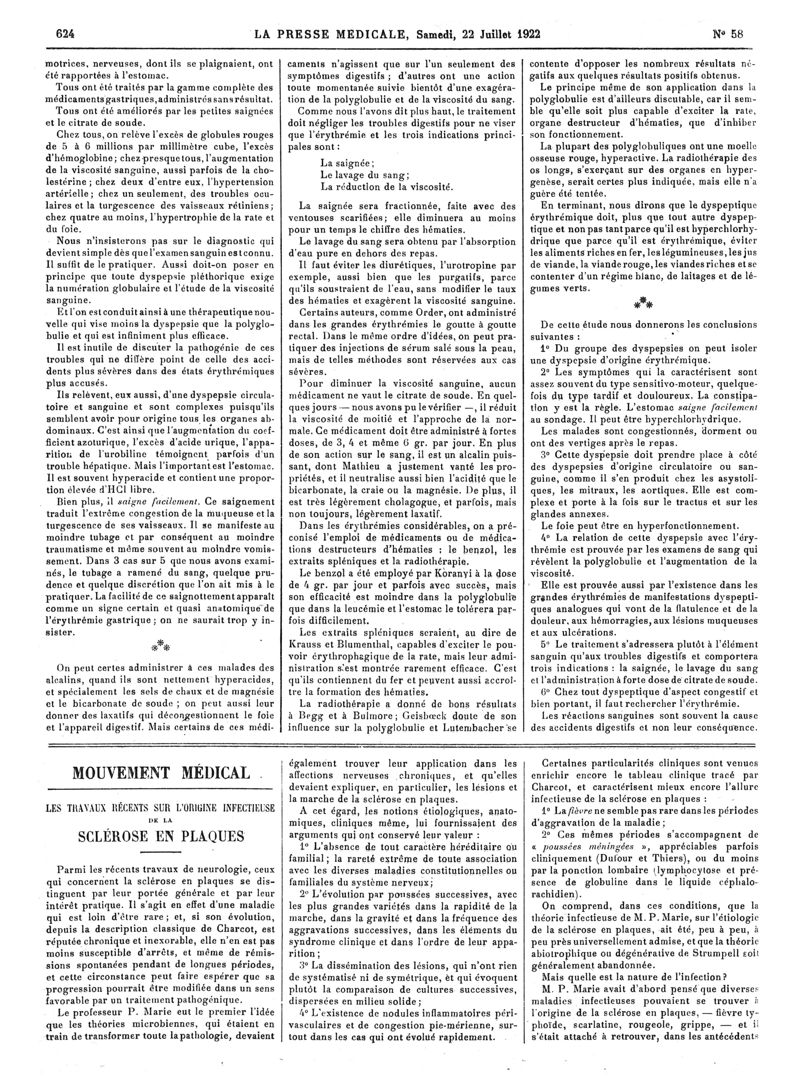 1922, Articles originaux. -