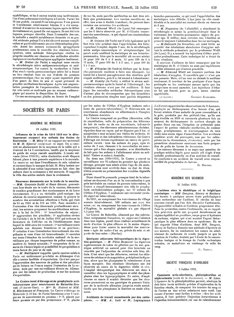 1922, Articles originaux. -