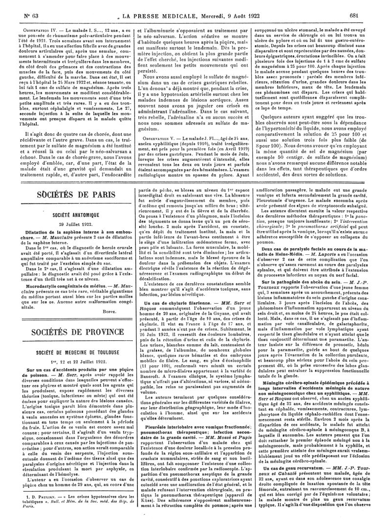 1922, Articles originaux. -