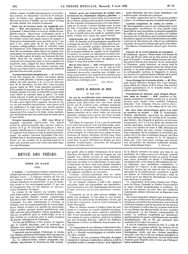 1922, Articles originaux. -